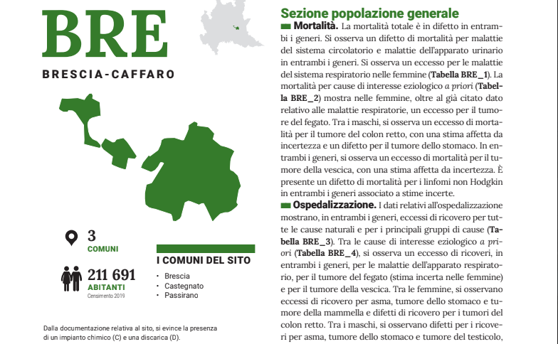 Ma come ricorda la prima cittadina, l’altro nodo aperto è quello sanitario. «Una delle richieste che l’amministrazione comunale e i cittadini hanno fatto all’Ats (Azienda Sanitaria Territoriale ndr) è quella di poter riprendere, dopo dieci anni, il monitoraggio della salute dei cittadini», dice la sindaca Castelletti. «Questo percorso si è avviato». A dare sostanza a questa richiesta sono i dati del VI Rapporto SENTIERI dell’Istituto Superiore di Sanità. Nel SIN Brescia-Caffaro il quadro è tutt’altro che lineare: la mortalità totale non risulta in eccesso, ma emergono segnali specifici su alcune patologie, tra cui malattie respiratorie, tumore del fegato e tumore della vescica.